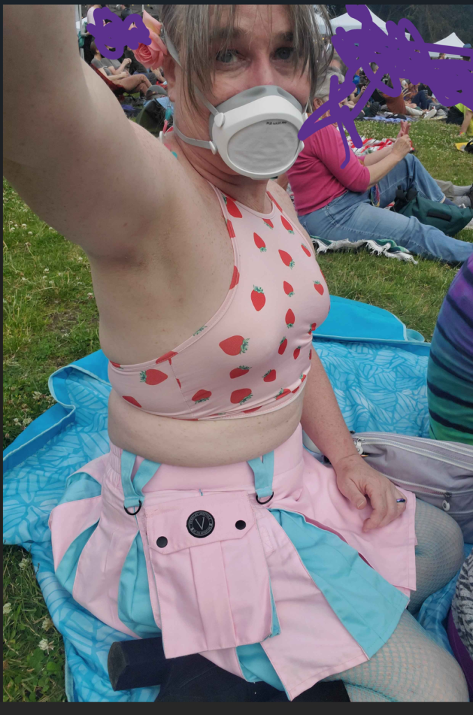 So, with that in mind, when I put those colors on and I dangle my legs out in fishnets and I wear the crop top and I dance amongst my siblings, I might look like a middle aged trans woman chasing a woo party time, or a poster child for some sort of hyperactivity sensory condition, but what I really am doing is channeling every thing that has happened to me, every story that I have ever heard from a friend over a signal chat, every story of systemic abuse that I have read about. I am taking every little threat from the national media, every indignity that I see, and I bring it to that gathering, and I say to myself